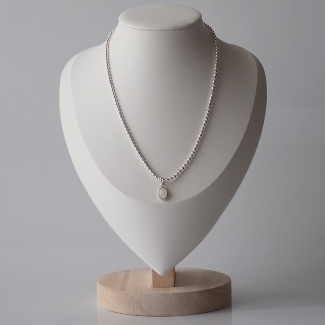 やや太めのボールチェーンに小さなお石を チェーンの長さは45cmです 注文を頂いてからひとつひとつ手作りで仕上げておりますので1点1点表情が異なります また、ひとつひとつの大きさには差がある場合がございます お届けには2〜3週間頂いております お手入れはシルバークロスをお使い下さい SILVER950 MADE TO ORDER HANDCRAFTED IN JAPAN