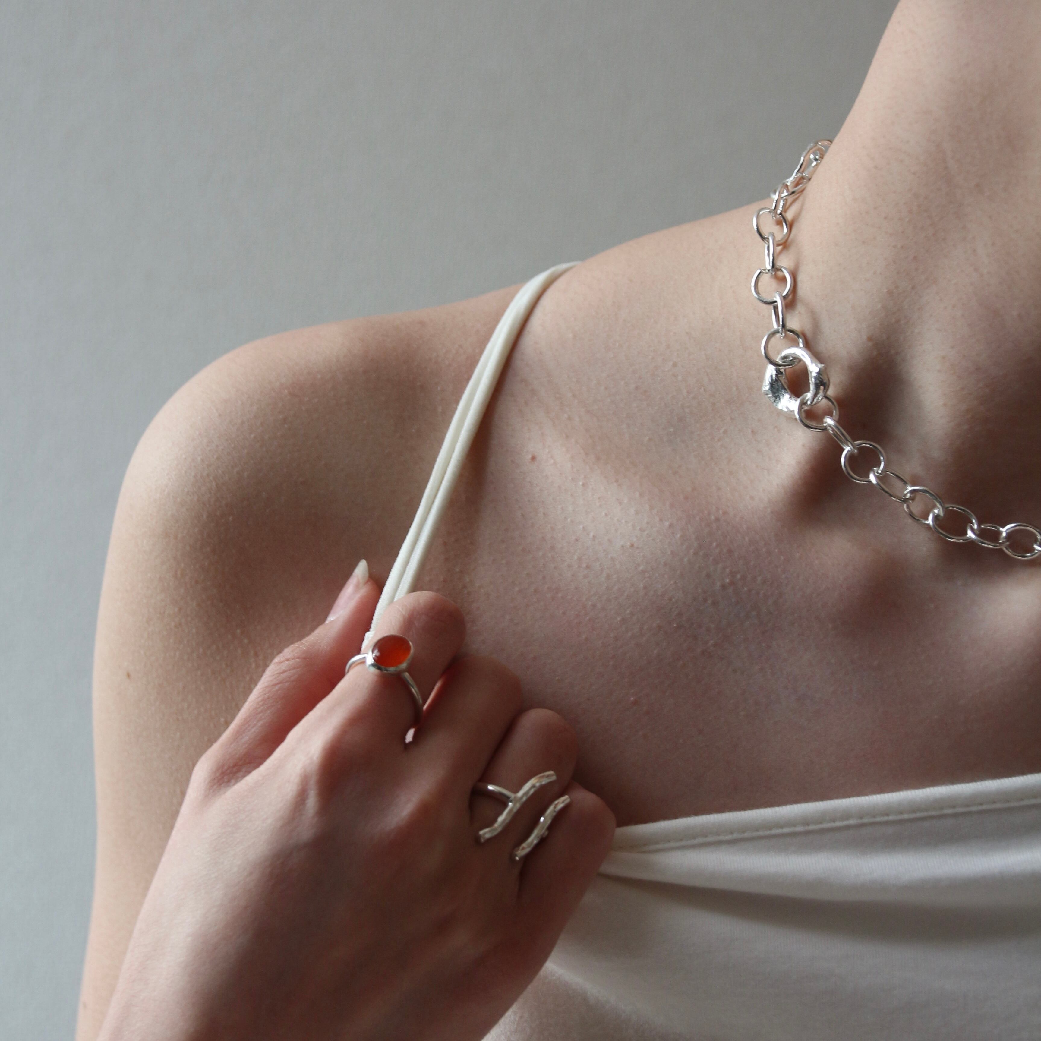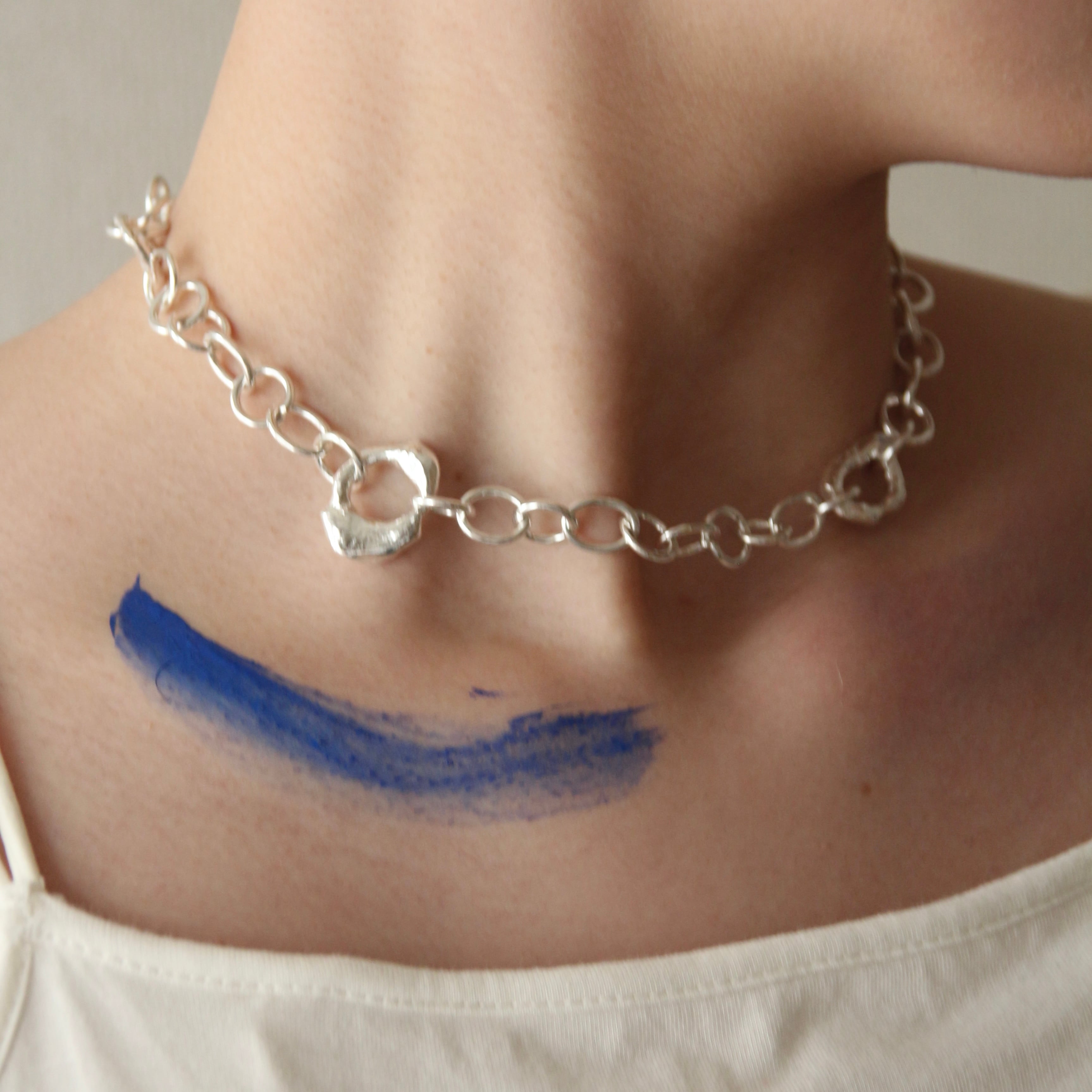 シルバー950を溶かしながら作るチャームを散りばめました。全ての形が一点ものです。